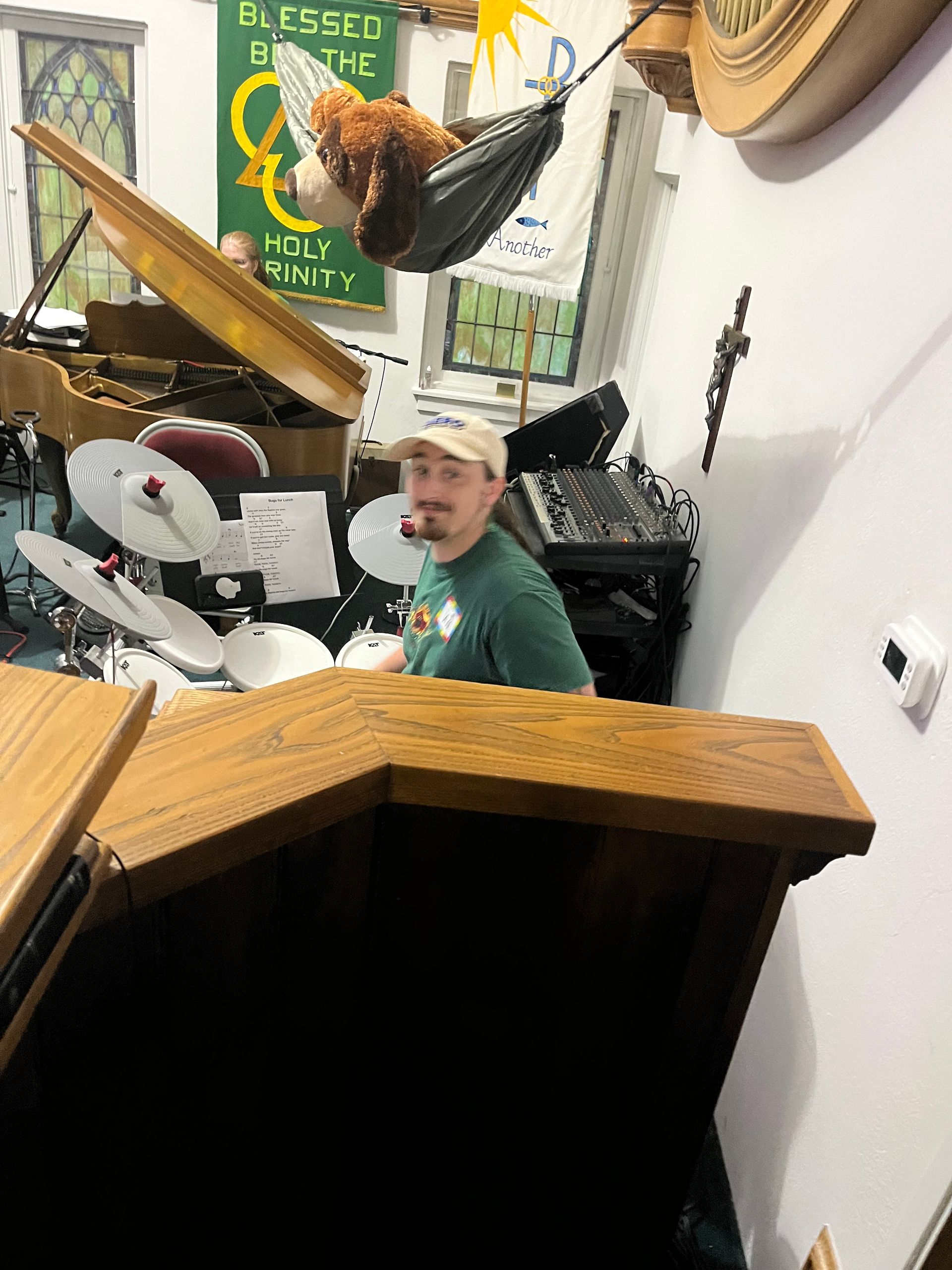Ian playing drums at VBS 2025